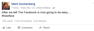 Zuckerberg terá escrito no Twitter que “After we left The Facebook is now going to be easy… #newface” (ver imagem anterior), referindo-se à anterior alteração de nome. De facto, inicialmente, o Faceboook tinha a denominação de “The Faceboook” e por causa dos problemas de registo de marca já nessa altura optou por alterar o seu nome para apenas “Facebook”. Ao que parece a história volta-se a repetir. Algo que é normal se atendermos à complexa legislação americana para os direitos de marca.